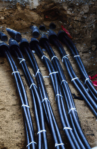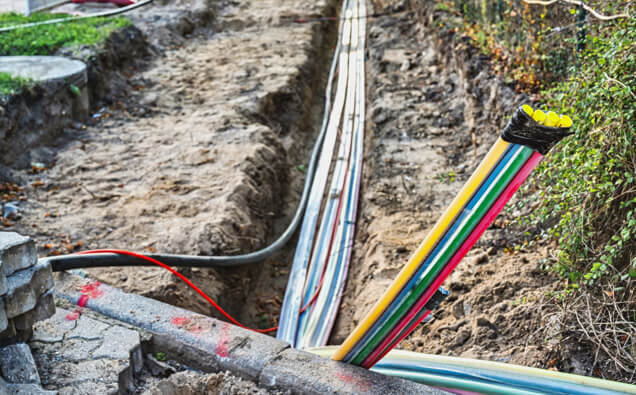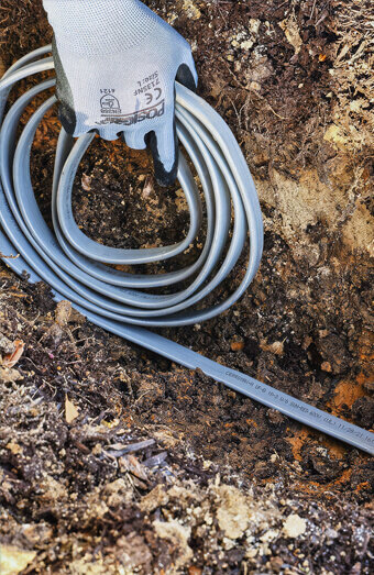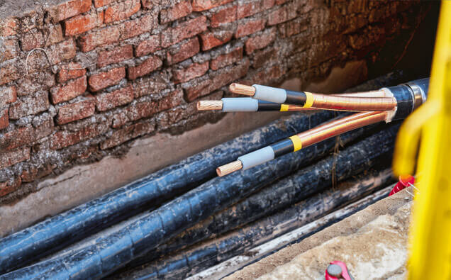 Expert installation of mains cabling from network pillars to metre boxes with correct segregation, depth, and protection according to strict distributor regulations.
